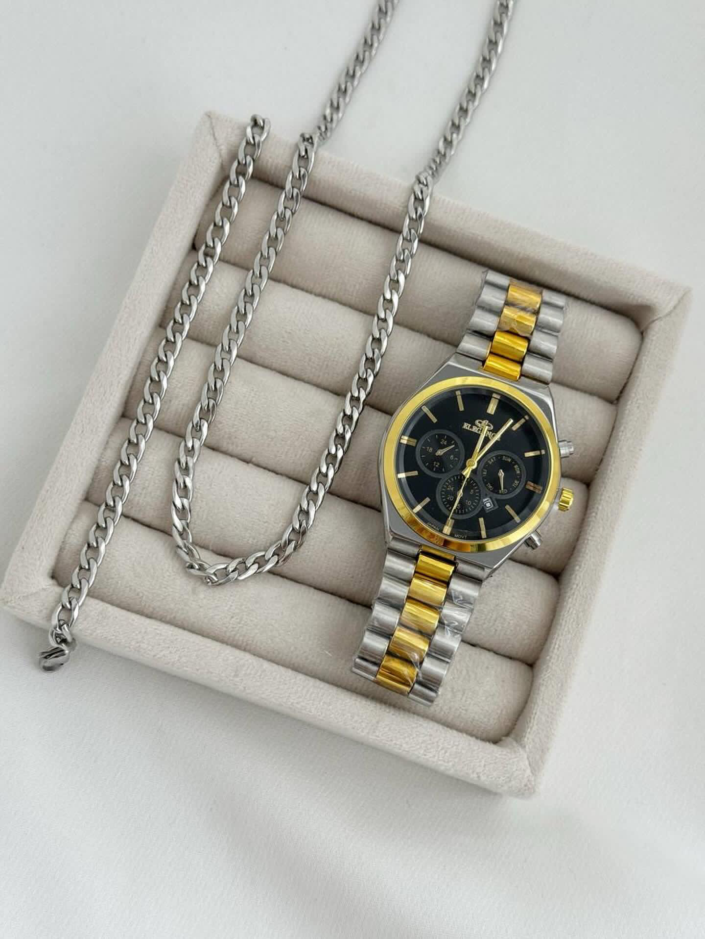 ساعت دورطلایی نقره ایی صفحه مشکی الگانس